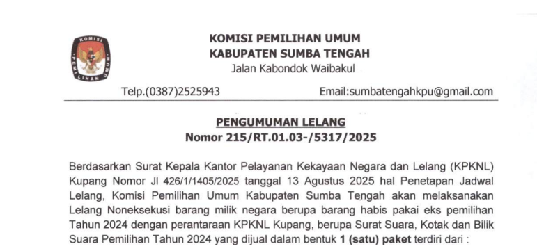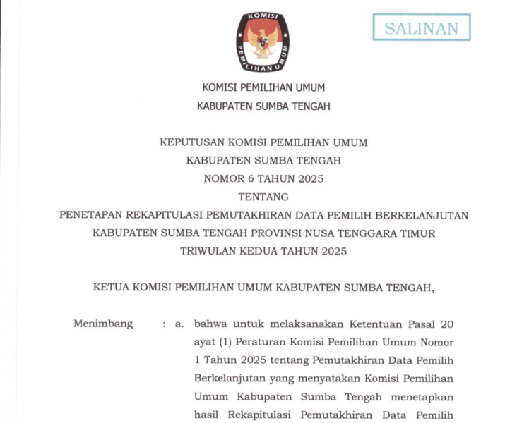 Pada hari ini Rabu, tanggal Dua, bulan Juli, tahun Dua Ribu Dua Puluh Lima bertempat di Aula Kantor KPU, Pukul 10.00 Wita, Komisi Pemilihan Umum Kabupaten Sumba Tengah
