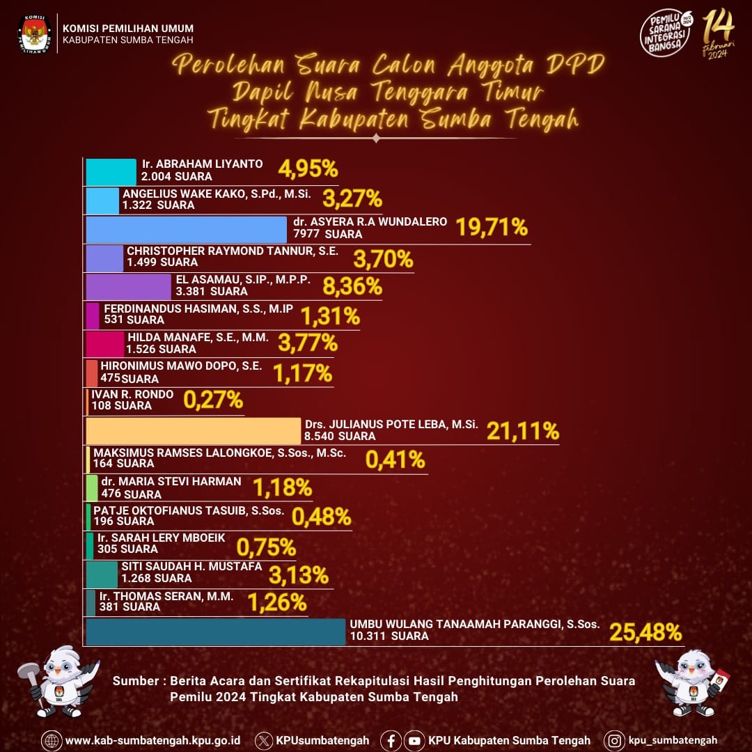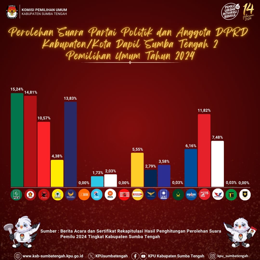 Perolehan Suara Parpol dan Anggota DPRD Kabupaten/Kota Dapil Sumba Tengah 2 Pemilu 2024, Klik disini