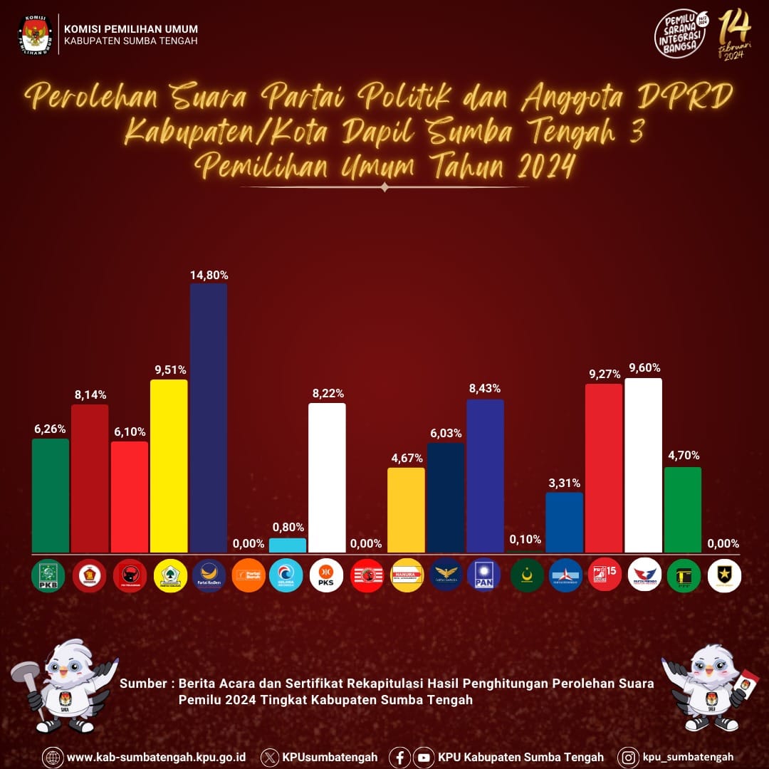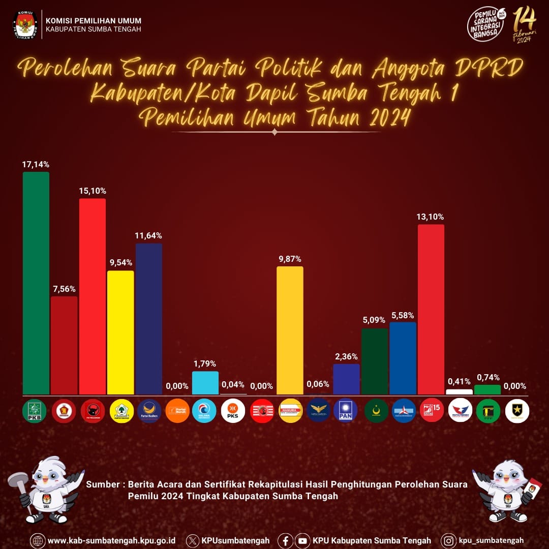 Perolehan Suara Parpol dan Anggota DPRD Kabupaten/Kota Dapil Sumba Tengah 1 Pemilu 2024, Klik disini