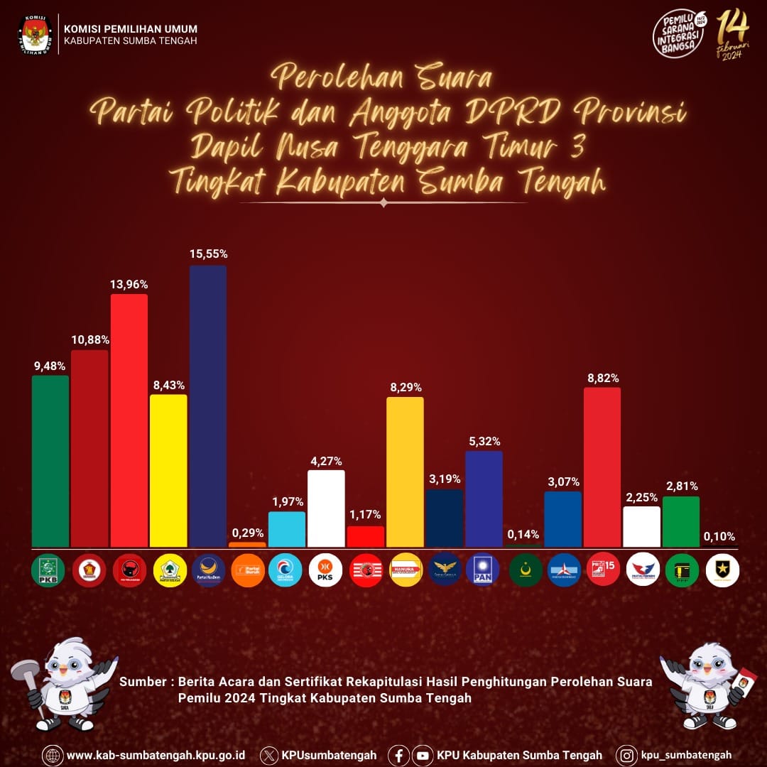 Perolehan Suara Parpol dan Anggota DPRD Provinsi Dapil Nusa Tenggara Timur 3 Tingkat Kabupaten Sumba Tengah, Klik disini